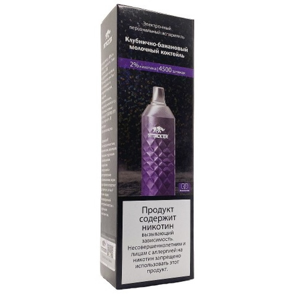 Технические характеристики Электронная сигарета Attacker 4500 затяжек Клубнично-банановый молочный коктейль